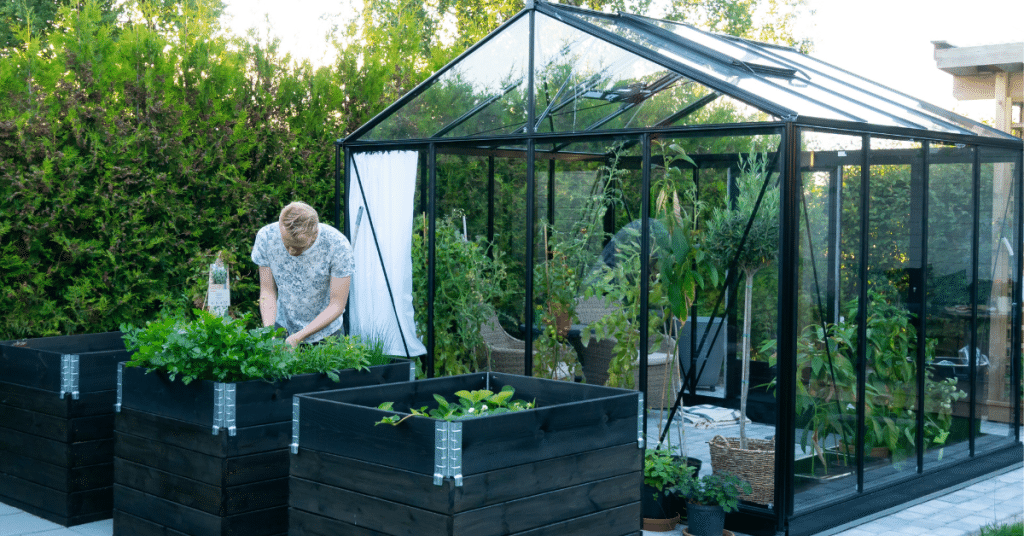 Cold frames and greenhouses can extend the growth season and protect sensitive plants during extreme temperatures. The cold frame shelters protect crops from extreme weather, promoting growth and yield.